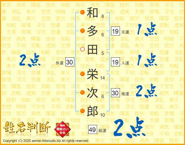 和(8画)多(6画)田(5画) 栄(14画)次(6画)郎(10画)