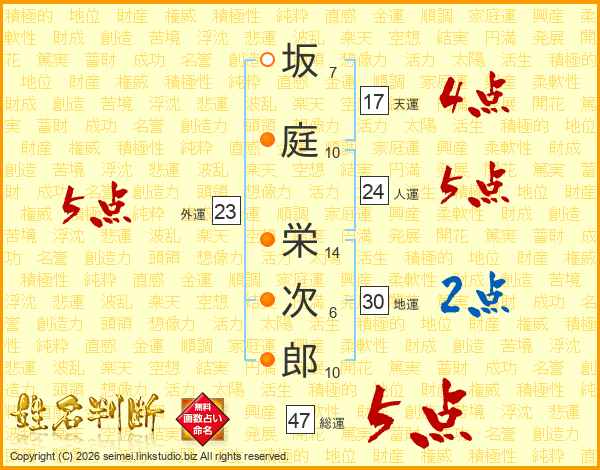 坂庭栄次郎さんの総運は47画の5点!