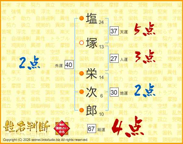 塩塚栄次郎さんの総運は67画の4点!