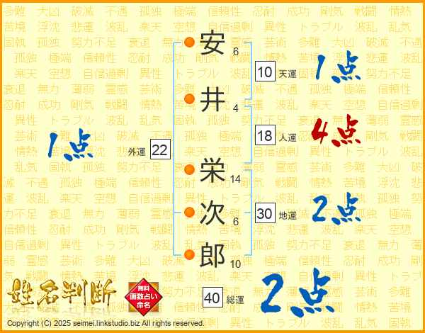 安(6画)井(4画) 栄(14画)次(6画)郎(10画)