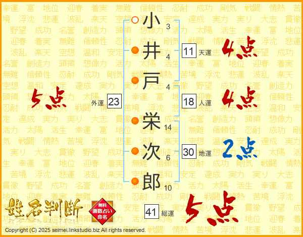 小(3画)井(4画)戸(4画) 栄(14画)次(6画)郎(10画)