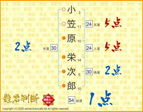 小笠原栄次郎さんの総運は54画の1点!