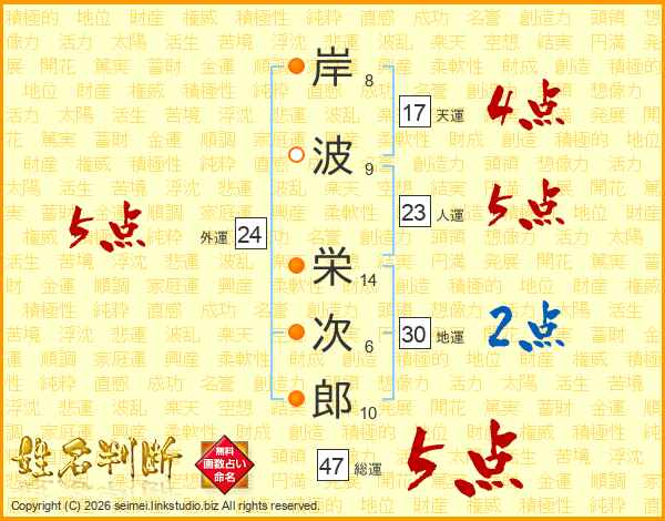 岸波栄次郎さんの総運は47画の5点!