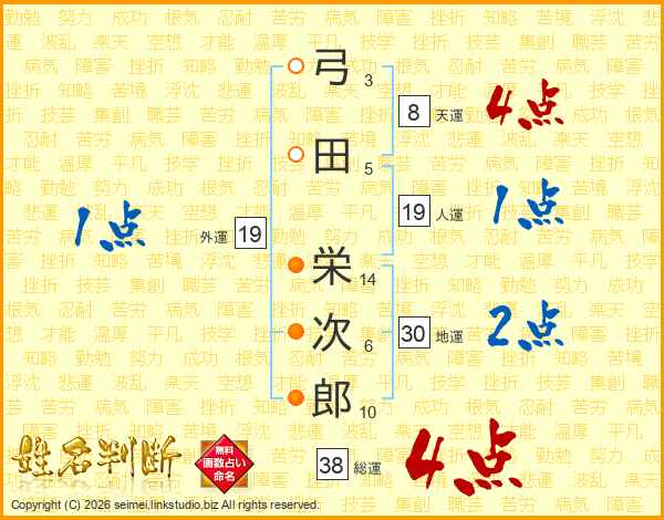弓田栄次郎さんの総運は38画の4点!