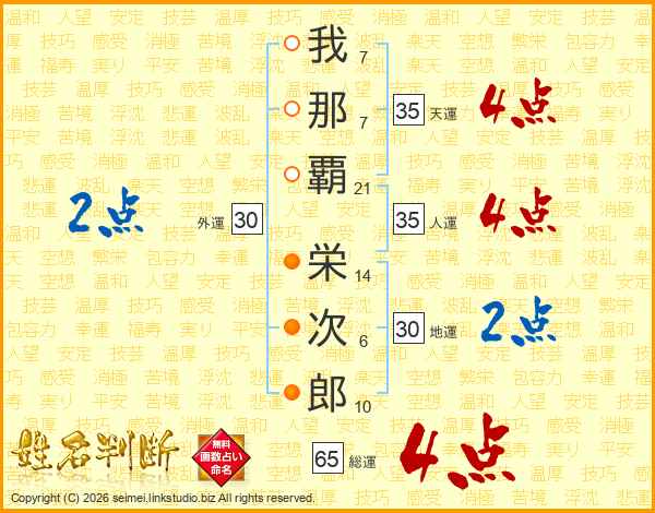 我那覇栄次郎さんの総運は65画の4点!
