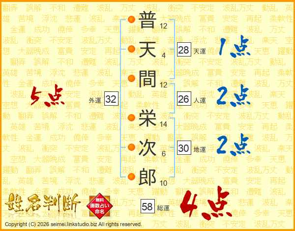 普天間栄次郎さんの総運は58画の4点!