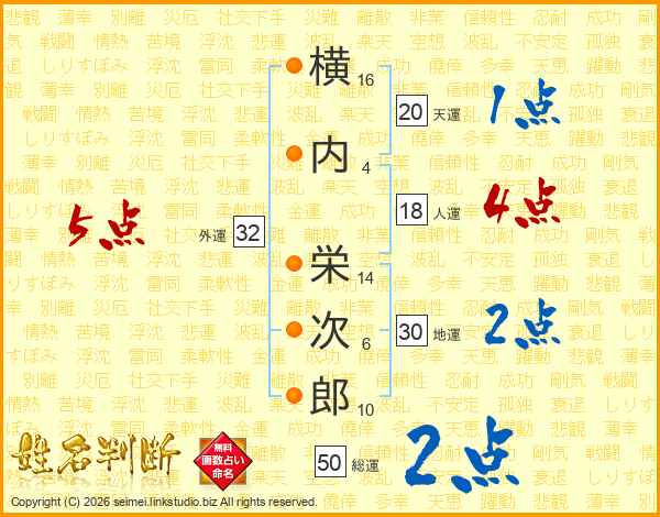 横内栄次郎さんの外運は32画の5点!