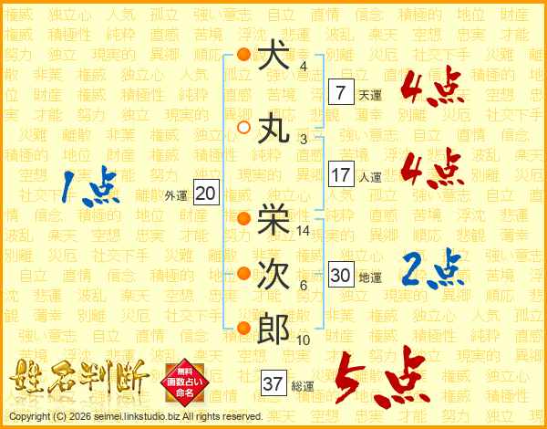 犬丸栄次郎さんの総運は37画の5点!
