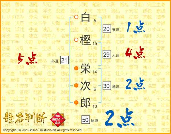 白樫栄次郎さんの外運は21画の5点!