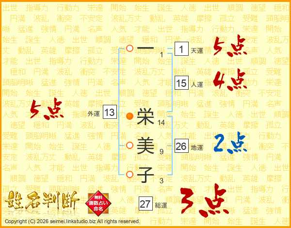 一(1画) 栄(14画)美(9画)子(3画)