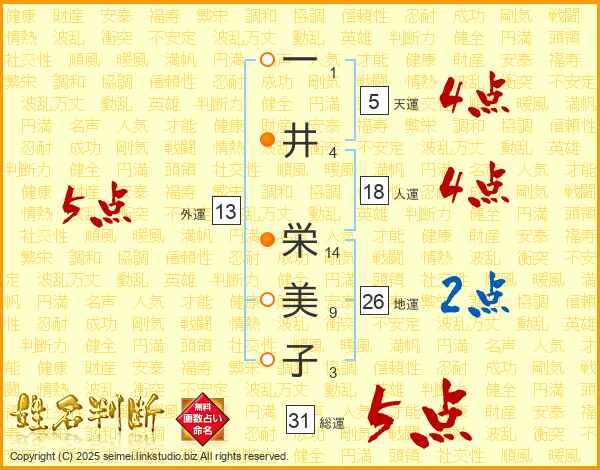 一(1画)井(4画) 栄(14画)美(9画)子(3画)