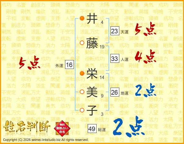 井藤栄美子さんの天運は23画の5点!