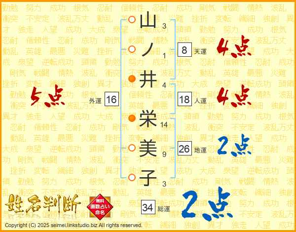 山ノ井栄美子さんの総運は34画の2点!