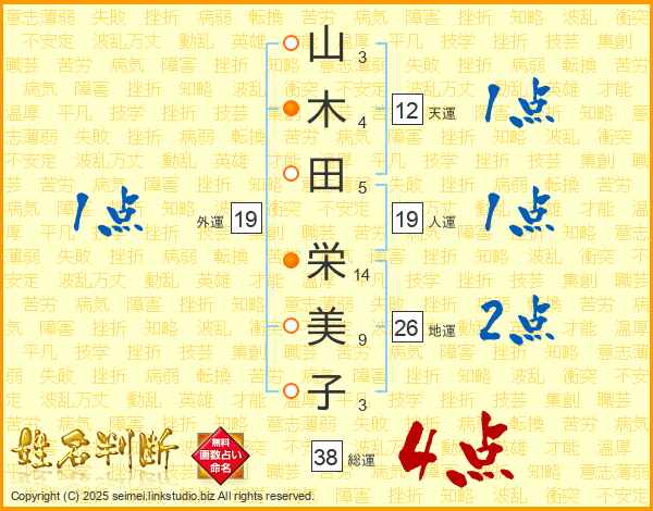 山(3画)木(4画)田(5画) 栄(14画)美(9画)子(3画)
