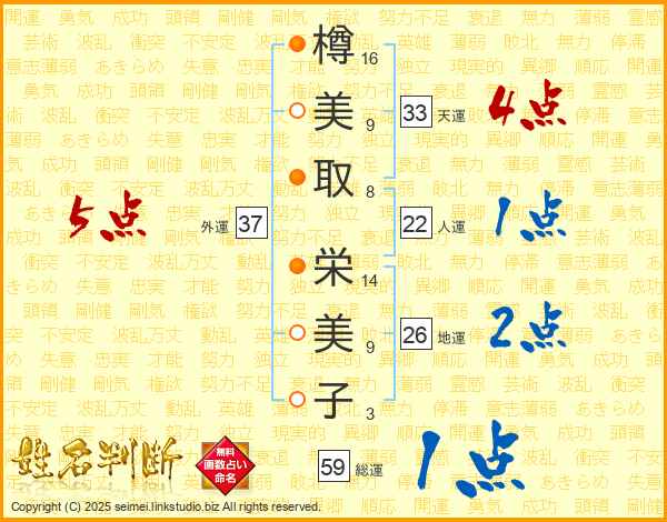 樽美取栄美子さんの総運は59画の1点!