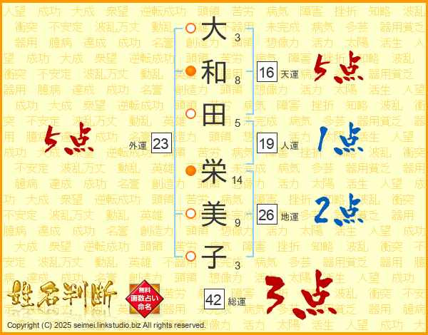 大(3画)和(8画)田(5画) 栄(14画)美(9画)子(3画)