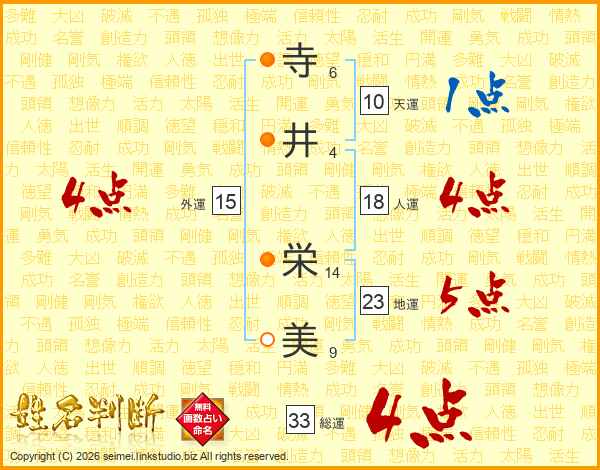 寺(6画)井(4画) 栄(14画)美(9画)