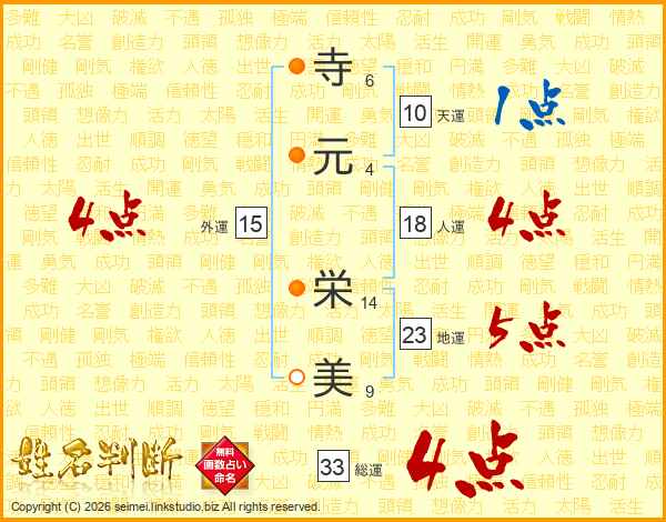 寺(6画)元(4画) 栄(14画)美(9画)