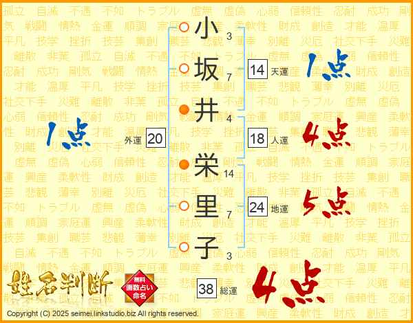 小坂井栄里子さんの総運は38画の4点!