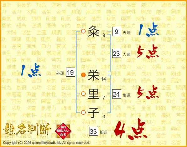 粂栄里子さんの総運は33画の4点!