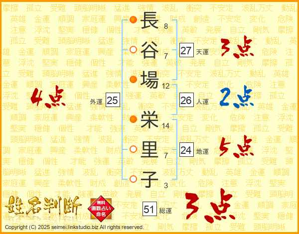 長谷場栄里子さんの総運は51画の3点!