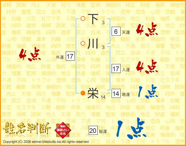 下川栄さんの外運は17画の4点!