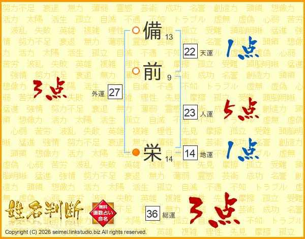 備前栄さんの人運は23画の5点!