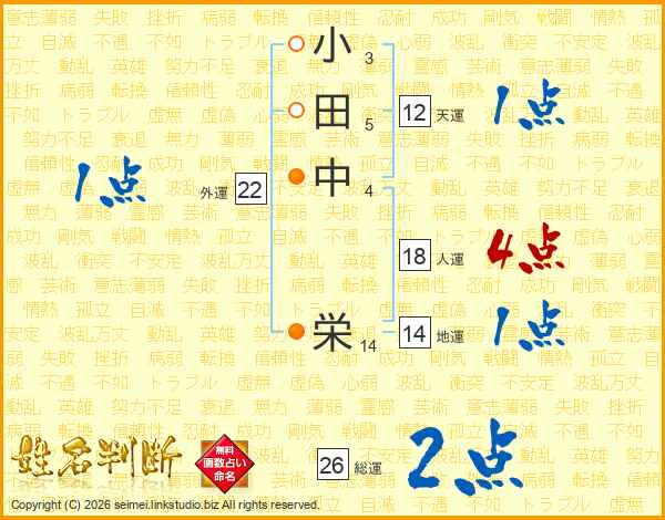小田中栄さんの人運は18画の4点!