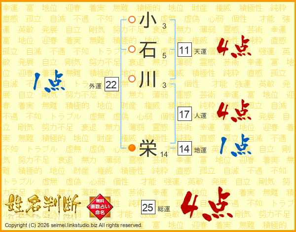 小石川栄さんの総運は25画の4点!