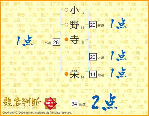 小野寺栄さんの総運は34画の2点!