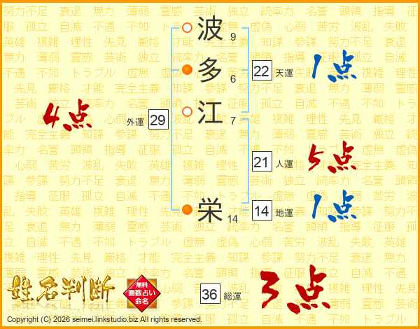 波多江栄さんの総運は36画の3点!