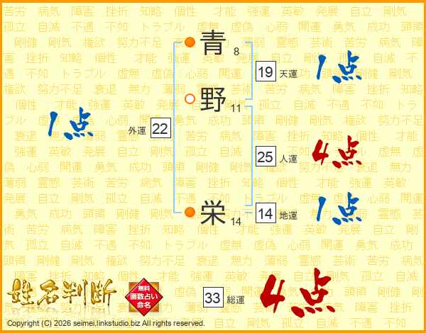 青野栄さんの総運は33画の4点!