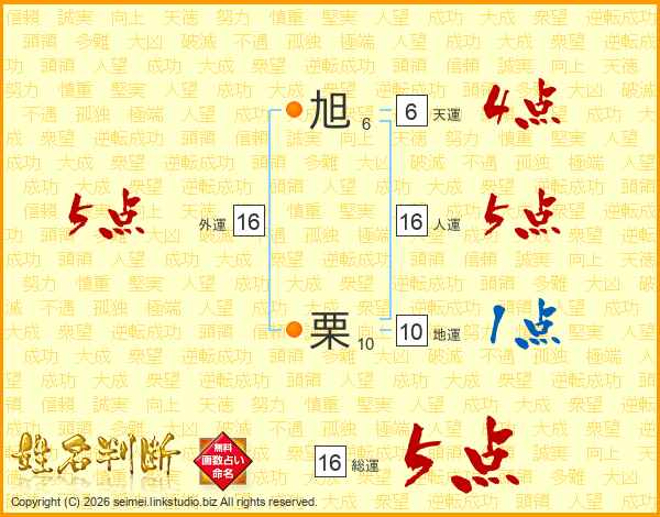 旭栗さんの総運は16画の5点!