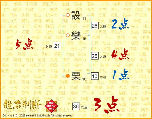 設樂栗さんの外運は21画の5点!