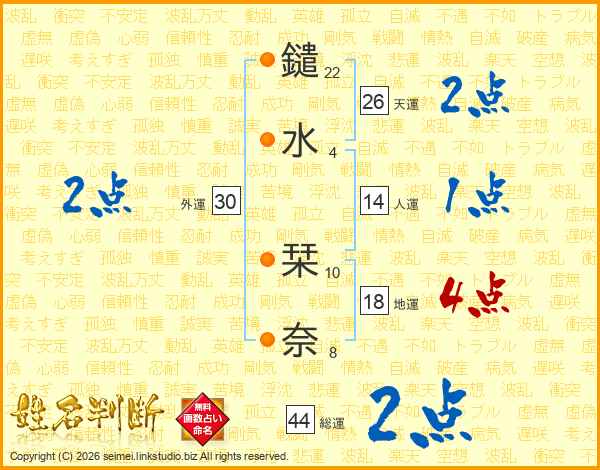鑓水栞奈さんの天運は26画の2点!