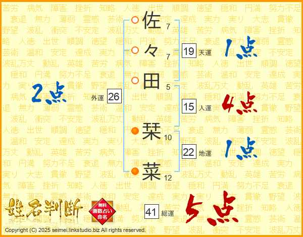 佐々田栞菜さんの天運は19画の1点!