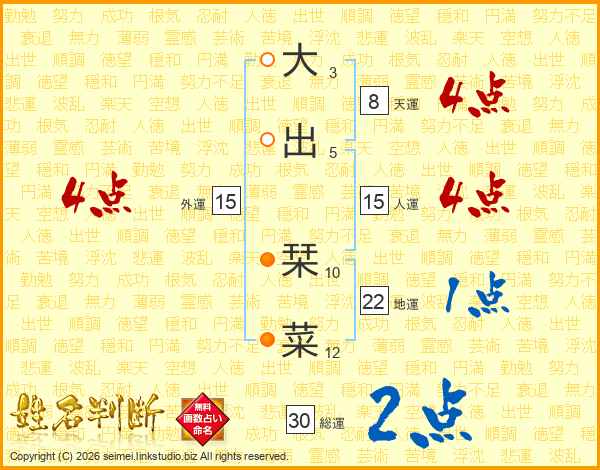 大出栞菜さんの外運は15画の4点!