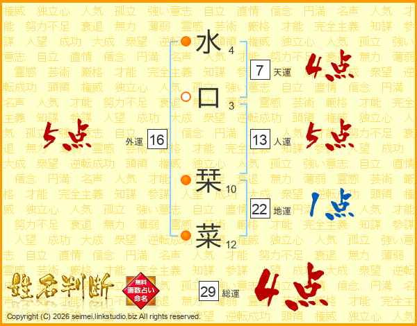 水口栞菜さんの総運は29画の4点!