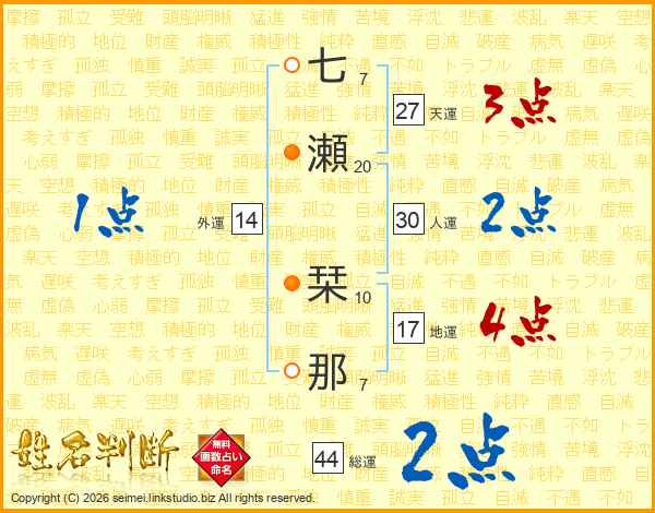 七瀬栞那さんの外運は14画の1点!