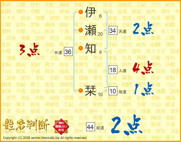 伊瀬知栞さんの総運は44画の2点!
