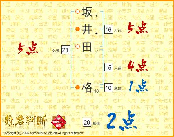 坂(7画)井(4画)田(5画) 格(10画)