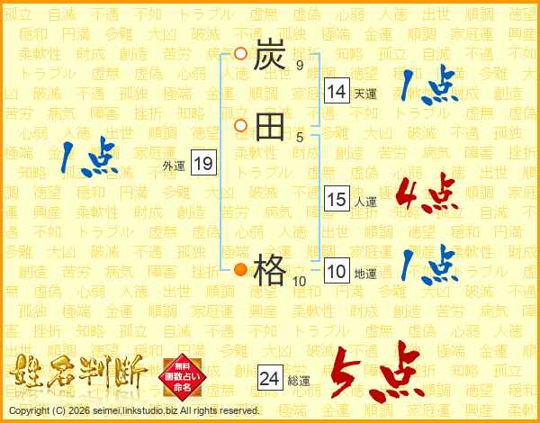 炭田格さんの総運は24画の5点!