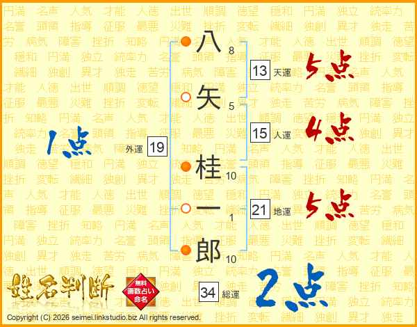八(8画)矢(5画) 桂(10画)一(1画)郎(10画)