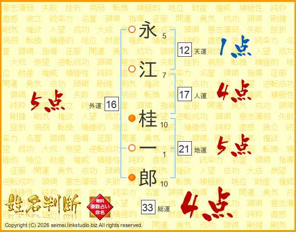 永(5画)江(7画) 桂(10画)一(1画)郎(10画)