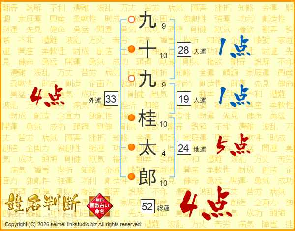 九十九桂太郎さんの総運は52画の4点!
