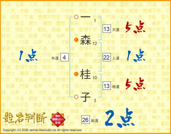 一森桂子さんの人運は22画の1点!