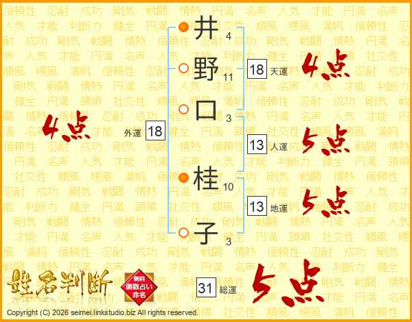 井(4画)野(11画)口(3画) 桂(10画)子(3画)