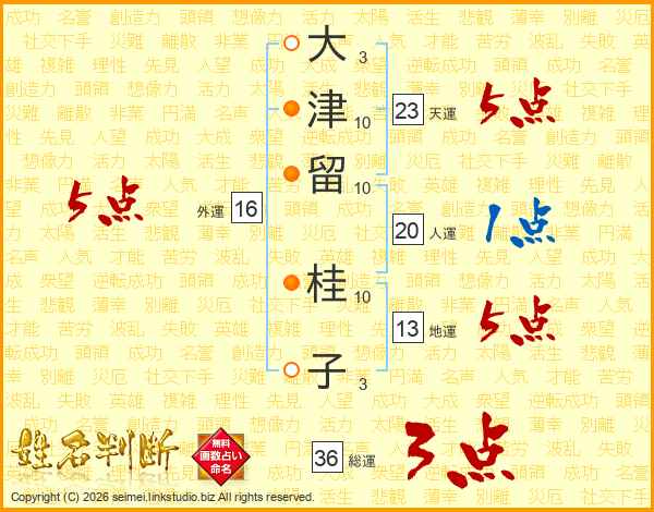大津留桂子さんの天運は23画の5点!