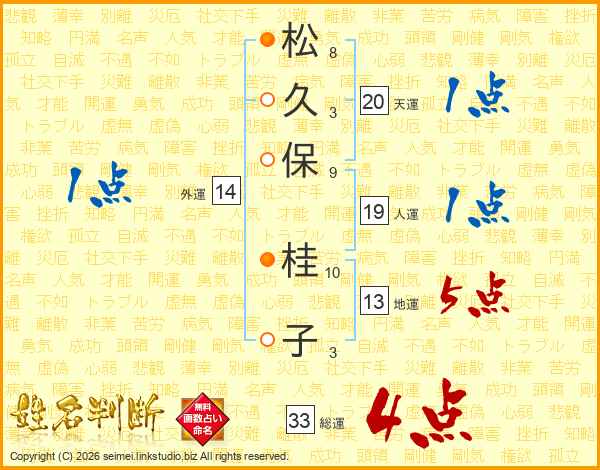 松(8画)久(3画)保(9画) 桂(10画)子(3画)