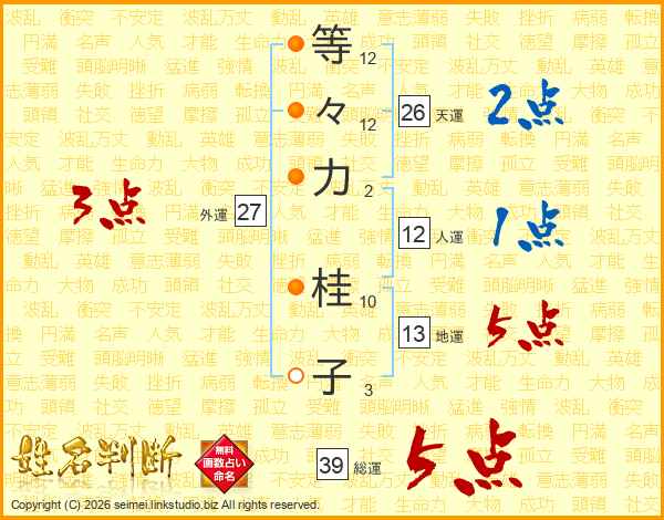 等々力桂子さんの総運は39画の5点!